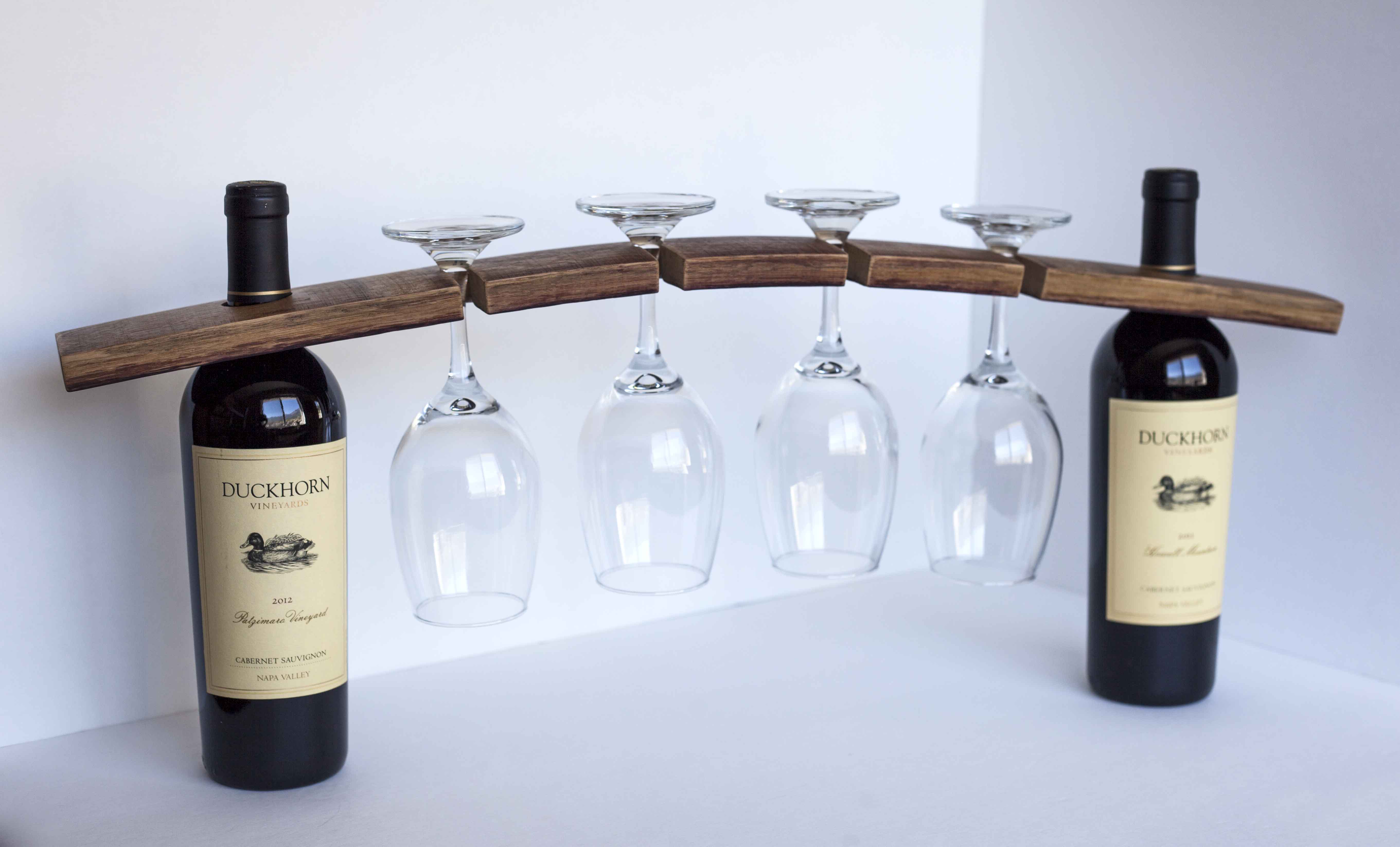 This wine bottle and glass holder is made from an authentic reclaimed Napa Valley wine barrel stave. It’s perfect for displaying your favorite bottle of wine and two pairs of wine glasses (4 glasses). (A smaller, 2-glass version of this caddy is also available from my shop) It’s a fantastic gift for wine lovers, newlyweds, bridesmaids/groomsmen, or new homeowners! Due to the nature of wood and differences in wine barrels, each piece will have its own subtle variations in color, grain, and character. Barrel staves vary in width from approximately 2″ to 3.5″ Dimensions: 23″ L x 2″-3.5″ W *bottle and glasses are not included